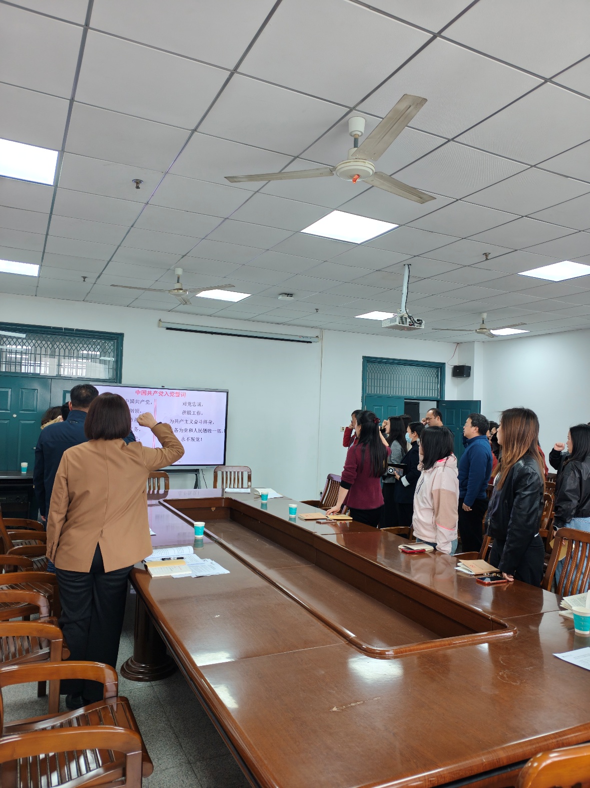 活动中,全体党员完成了交纳党费、重温入党誓词和集体诵读党章学习。本次活动的微党课深入学习宣传贯彻党的二十届四中全会精神,及时跟进学习习近平总书记关于教育的重要论述和“十五五”时期教育高质量发展相关部署。专题学习1由学院党委书记刘琼芳同志带领全体党员认真学习《习近平谈治国理政》第五卷、全国“两会”精神和习近平总书记考察湖北重要讲话精神、习近平总书记关于总体国家安全观的重要论述、《习近平总书记地方工作期间坚持正确政绩观生动实践》。专题学习2由学院院长姜国同志领学习近平总书记关于全面加强党的纪律建设的重要论述,持续加强法规制度宣传教育,以正确政绩观干事创业、服务师生、担当作为;认真学习党组织执行党纪失职的情形和处分规定、对统计造假的处分规定、对滥用问责或在问责工作中严重不负责任行为的处分规定、对违规干预和插手市场经济活动等行为的处分规定,对相关典型案例开展对照剖析研讨。专题学习3由学院副院长赵大方同志领学《中国共产党党员网络行为规定》和《关于规范党员干部网络行为的意见》,引导党员牢记身份、站稳政治立场,自觉规范网络行为。