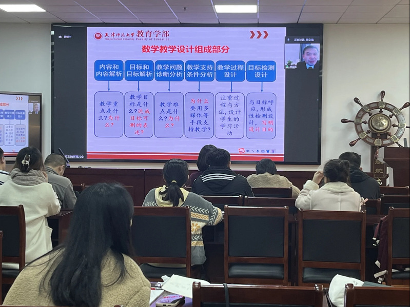 为了提高学科教学(数学)教育硕士及师范生的教师专业素养,2022年11月21日晚,成人网 举办“磁湖学术活动日(八)”活动,邀请到天津师范大学教育学部博士生导师吴立宝教授,做了题为“指向深度学习的中学数学教学设计”的线上学术报告,学科教学(数学)导师和学生在信息大楼10603、本科师范生和部分教师通过腾讯会议分别参加,报告由成人网 院长吴爱龙教授主持。