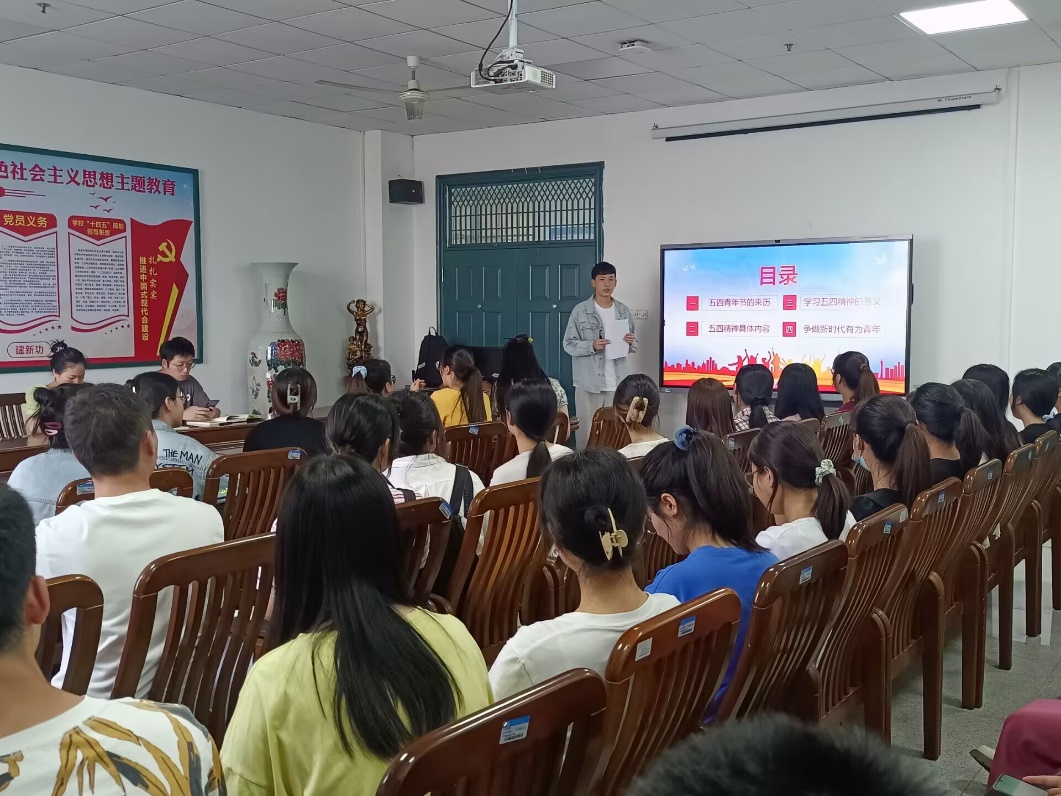 会议伊始,党支部全体颂唱了国歌。随后又重温了入党誓词,按期缴纳了当月党费,集中学习了《习近平在学习贯彻习近平新时代中国特色社会主义思想主题教育工作会议上的讲话》以及《党章》选段。接着燕泽鹏同志从五四青年节的来历,五四精神具体内容,学习五四精神的意义,争做新时代有为青年这四个方面来对弘扬五四精神,争做新时代有为青年进行讲述。五四精神是忧国忧民的爱国主义精神,无私奉献的高度社会责任感,宣传民主科学的进步精神,追寻时代潮流、把握时代命运的伟大精神。习近平总书记指出青年一代有理想、有本领、有担当,国家就有前途、民族就有希望。中华民族伟大复兴的中国梦终将在一代代青年的接力奋斗中变为现实。作为新时代中国特色社会主义建设和发展的主力军,青年们要有推动实现中华民族伟大复兴的中国梦的历史担当,勇做新时代的奋斗者。