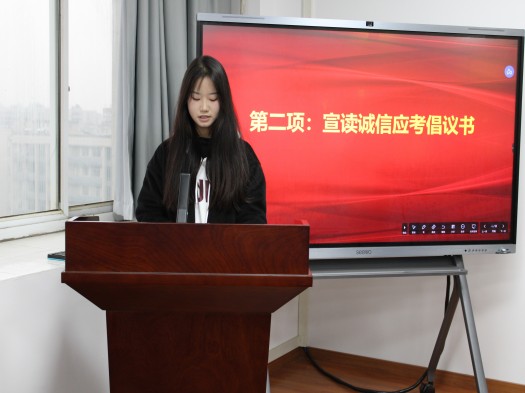会议期间,院自律委员会副主席袁子慧宣读《诚信应考倡议书》。呼吁同学们以身作则,树道德之新风,立诚信之根本。