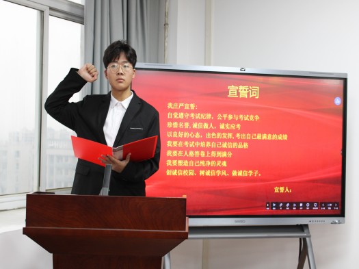 在宣誓环节中,由学生代表赵剑熙带领全体参会人员进行宣誓,“我庄严宣誓,自觉遵守考试纪律,公平参与考试竞争,珍惜名誉,诚信做人,诚实应考,以良好的心态,出色的发挥,考出自己最满意的成绩!”掷地有声的誓言表达着同学们坚定的信念。