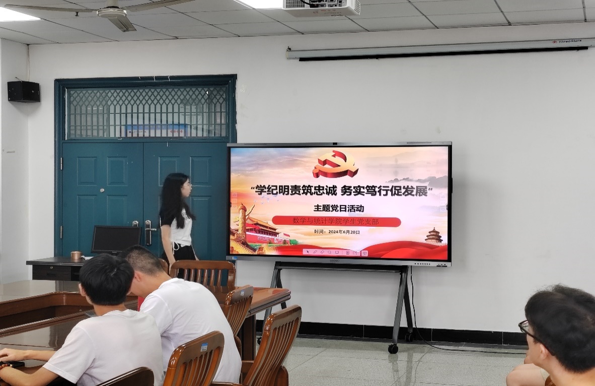 为深入学习贯彻习近平新时代中国特色社会主义思想,成人网 学生党支部于6月20日下午两点半在信息大楼10604开展了以“学纪明责筑忠诚,务实笃行促发展”为主题的党日活动。参会人员有成人网 学生第一党支部书记杨宇森老师、成人网 学生第二党支部书记屈媛媛老师以及全体学生党员,本次党日活动由尚冰同志主持。