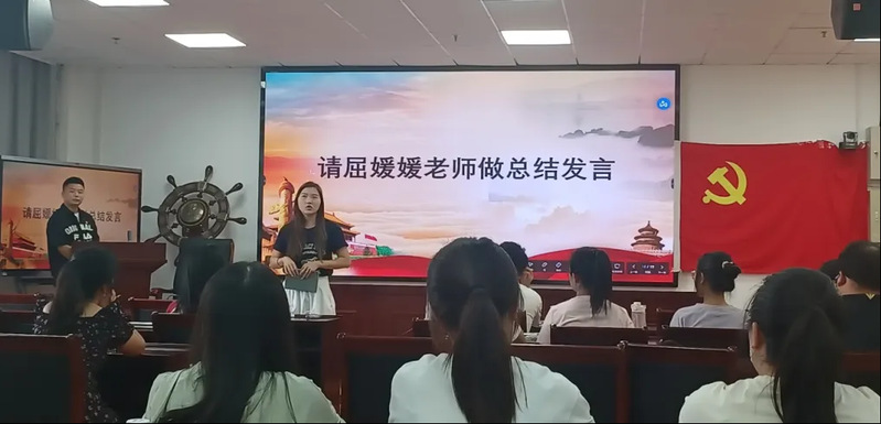 最后,屈媛媛同志进行了总结性发言。屈媛媛同志对全体党员在迎接新生和军训工作中的责任感和担当精神给予了充分肯定,并激励党员同志们继续发挥先锋模范作用。同时,她强调指出,作为师范专业的党员,我们应深入学习和践行教育家的精神,通过积极参与支教等志愿服务活动,将我们的智慧和力量书写在祖国最需要的热土之上。
