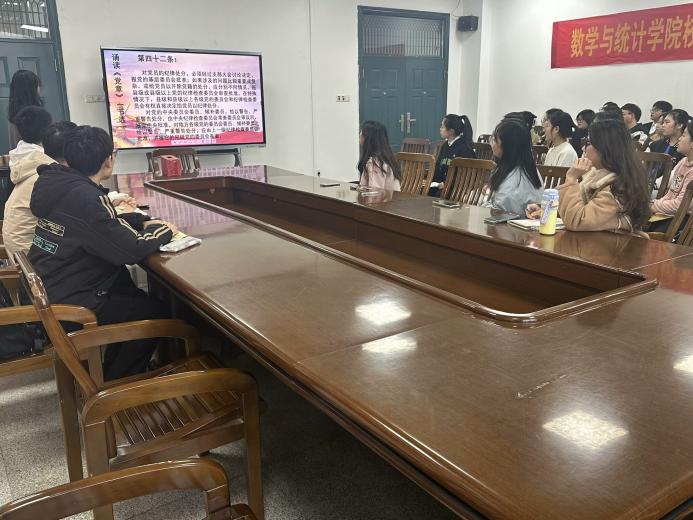 11月21日中午,数统学院学生党支部在信息大楼10604教室召开“学习贯彻习近平总书记考察湖北重要讲话精神”主题党日活动,学生第一党支部书记杨宇森、学生第一、第二支部全体党员参加,学生第二党支部陈安同志主持。