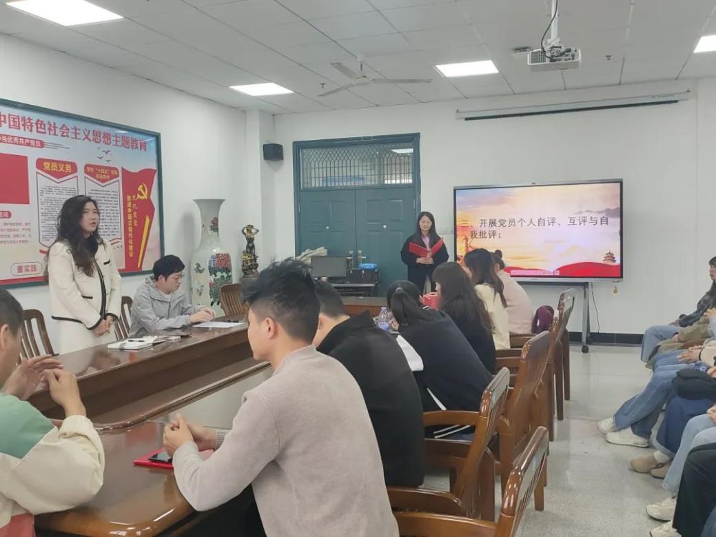 随后杨老师、屈老师分别对自己展开自评,杨老师从工作方式和积极性方面对自身提出批评,屈老师从过去的不足出发,提出要平衡工作与生活,在工作中投入更多的活力。学生党员代表也从工作、学习等方面,对自己展开自评,提出自我的不足之处及相应的改进措施。而后进行了五分钟的全体学生党员自评互评,各党员之间进行了充分沟通,大家积极参与,做到及时总结反思。