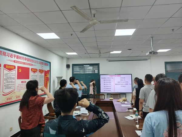 活动中,全体党员完成了交纳党费、重温入党誓词和集体诵读党章学习。本次活动微党课环节由学院领导班子成员领学,共分为三个专题。专题学习1由学院党委副书记袁曼同志领学,带领全体党员学习了党的创新理论,重点学习《习近平关于加强党的作风建设论述摘编》《习近平总书记关于党的建设的重要思想概论》《论教育》等重要著作,学习《求是》杂志发表习近平总书记重要文章《加快建设文化强国》