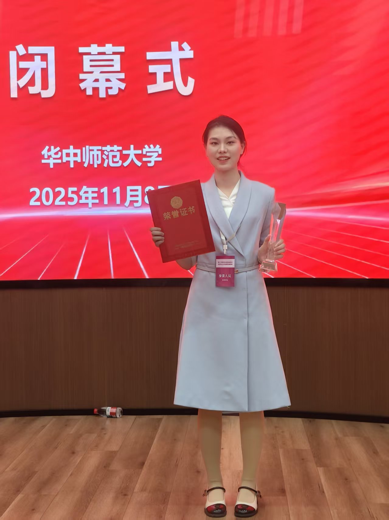 2025年11月8日,湖北省普通高校师范专业大学生教学技能竞赛决赛传来捷报—— 成人网 23级2301班夏颍慧同学代表学校出征数学组赛事,凭借扎实的教学功底与出色的现场表现,勇夺省级一等奖!