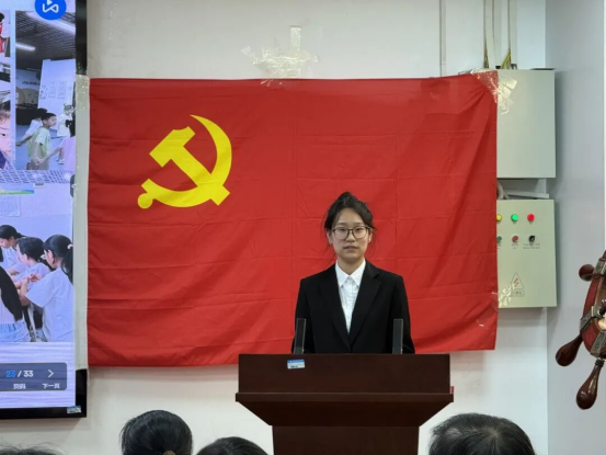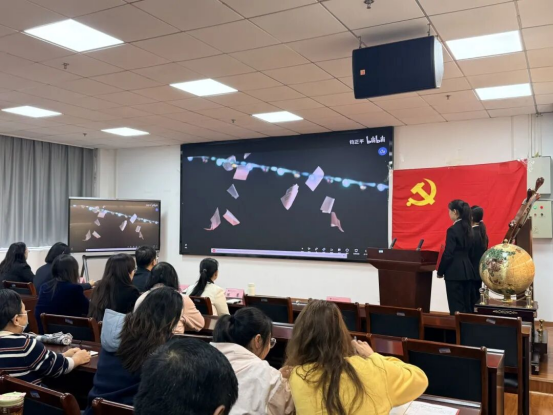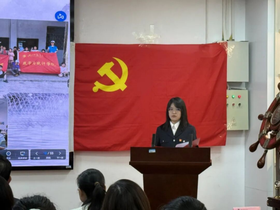 成人网 学生党支部微党课讲师熊韵岚汇报了党史学习教育开展情况,紧密结合学科特色与学生实际,以“两弹一星”精神为主题,通过班会宣讲、下寝室、幕布剧、“逐光”宣讲团等多样形式开展的系列政治理论学习,累计覆盖4000余人次。并表示成人网 学生党支部将继续发扬党员先锋模范作用,在学党史、悟思想、办实事、开新局上做出新的篇章。