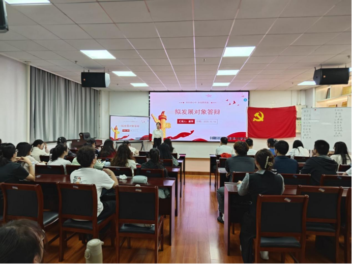 本次发展对象评选采用现场答辩的方式进行,主要包括个人陈述、现场评议与支部委员会讨论三个环节。符合推荐条件的入党积极分子结合PPT展示,围绕思想政治素养、学业表现、实践经历与服务能力等方面进行了全面汇报。答辩过程中,党员同志针对汇报内容进行提问,答辩人结合自身实际作出补充说明。