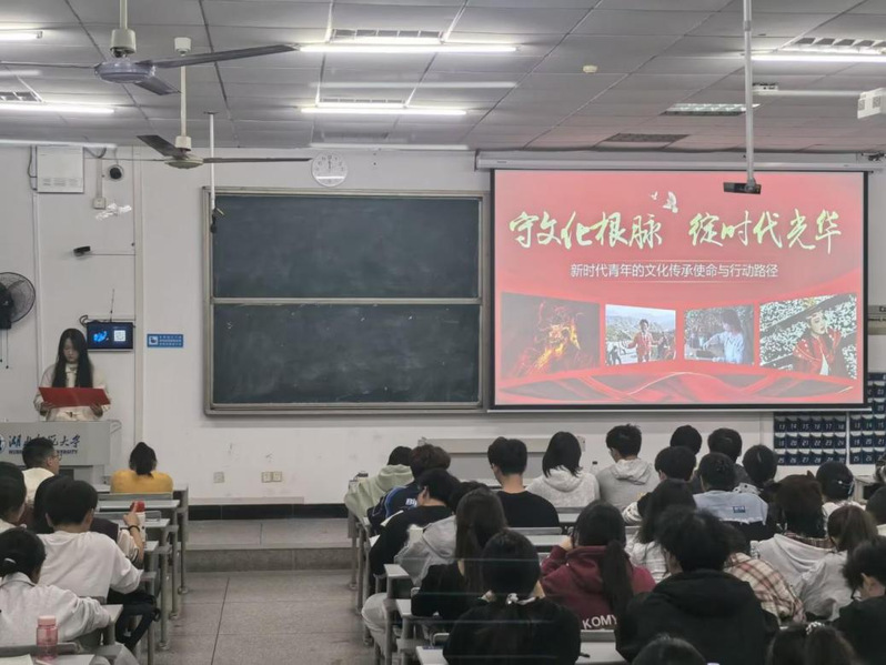 为进一步厚植团校学员文化自信,强化青年责任担当,全面提升学员理论素养与文化自觉,11月5日,成人网 第二十七期团校第二讲在科技大楼9607教室顺利举办。本次团课以“守文化根脉,绽时代芳华”为主题,由学生会主席赵诗雨担任主讲人,第二十七期团校全体学员参与。