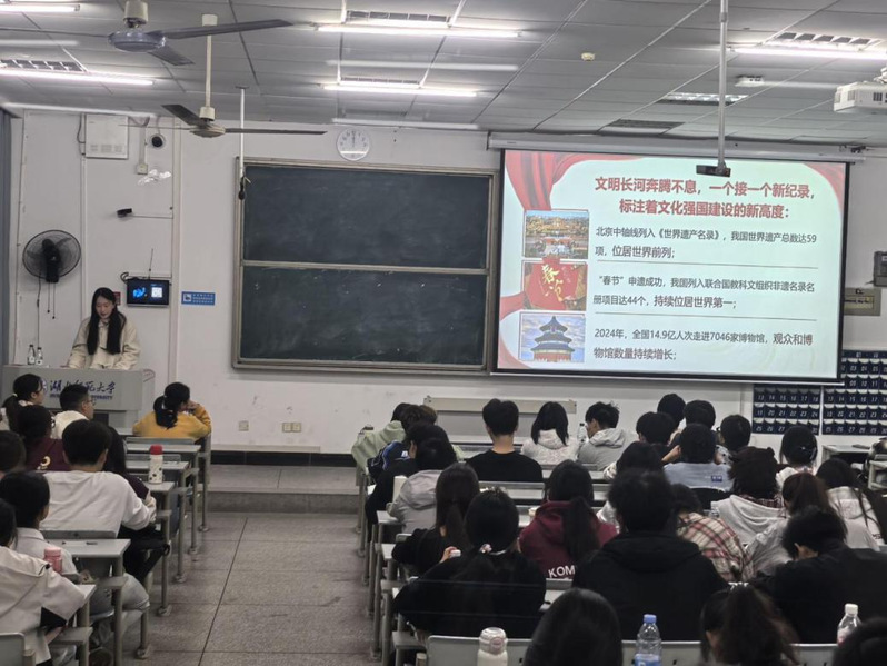 课程伊始,赵诗雨以北京中轴线的历史底蕴与春节成功列入联合国教科文组织非物质文化遗产名录为切入点,结合影像资料,引导学员深入学习习近平文化思想的核心要义,为本次团课拉开序幕。